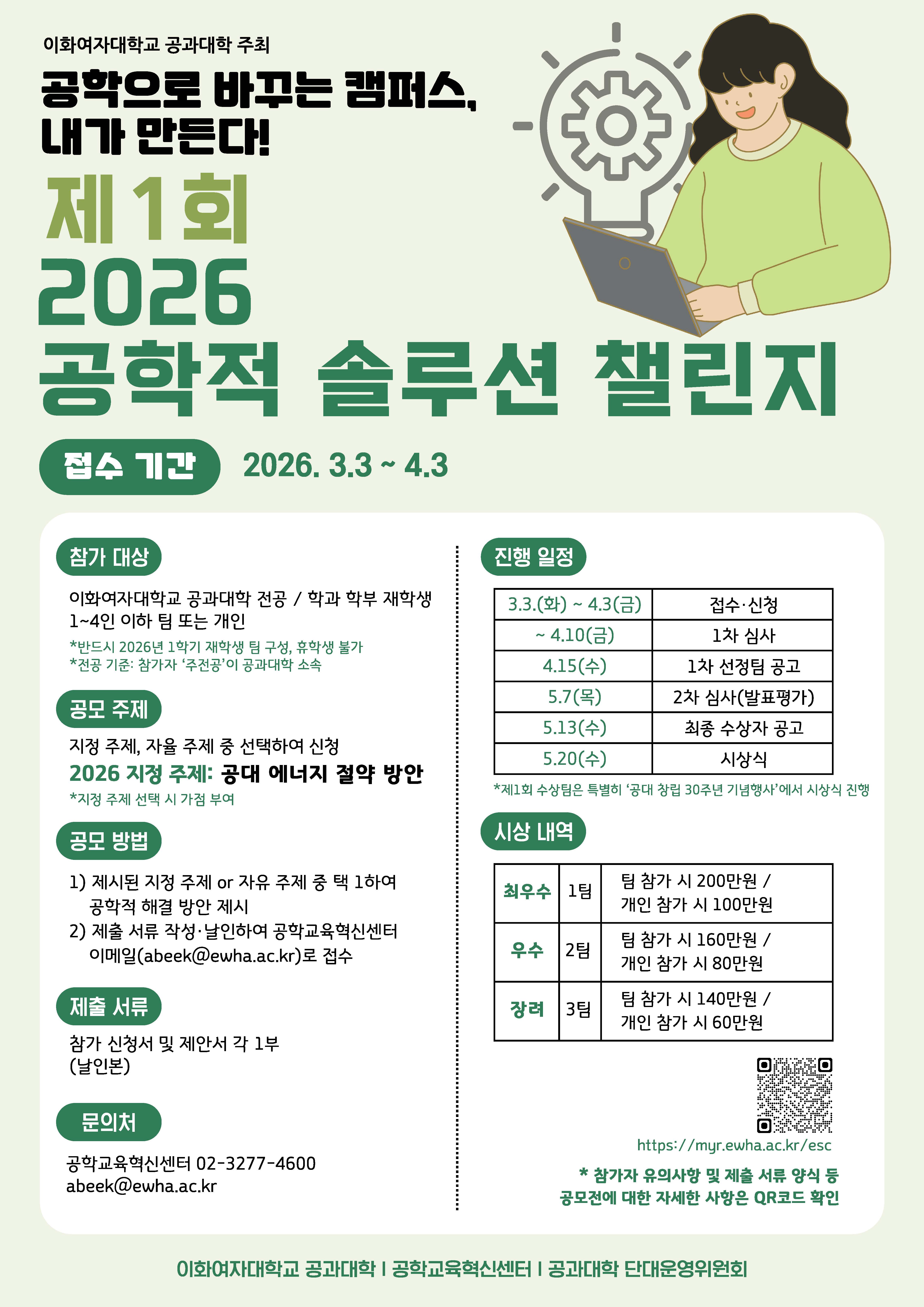 다음과 같이 "제1회 2026 공학적 솔루션 챌린지" 공모전을 개최합니다.