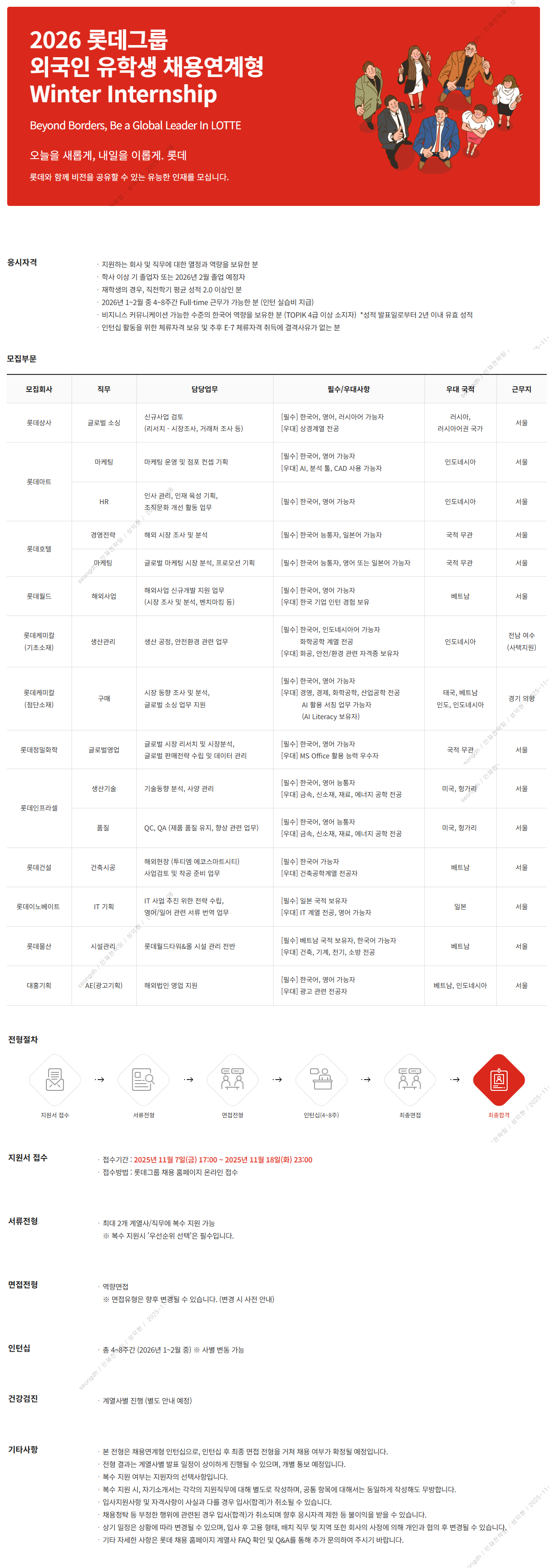 [롯데그룹] (~11/18) 2026외국인 유학생 채용연계형Winter Internship모집
