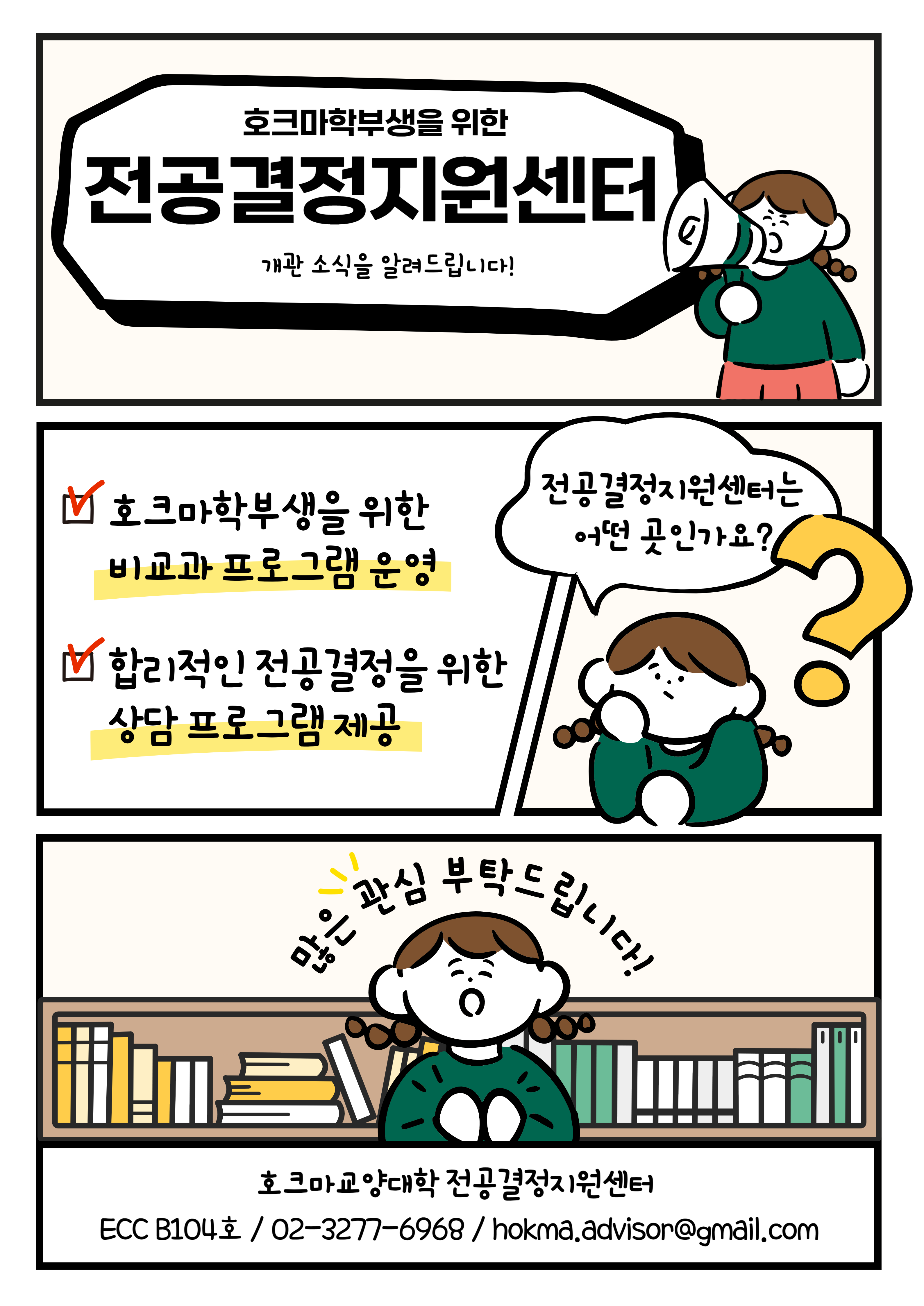[공지] 「호크마교양대학 전공결정지원센터」 ECC B104호 신규 개관 안내