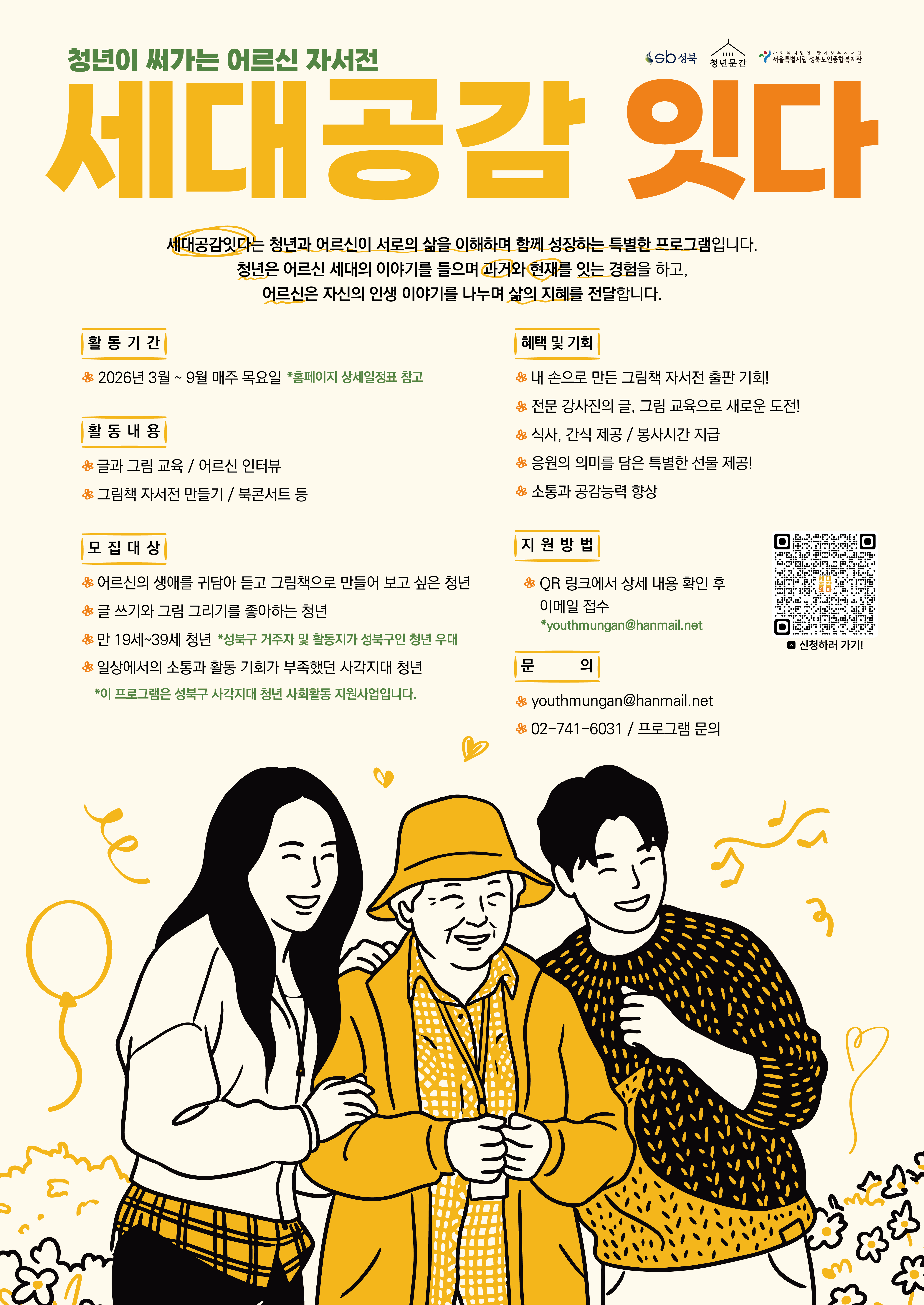 [청년문간] 2026 세대공감 잇다 - 어르신 자서전 제작 참여자 모집