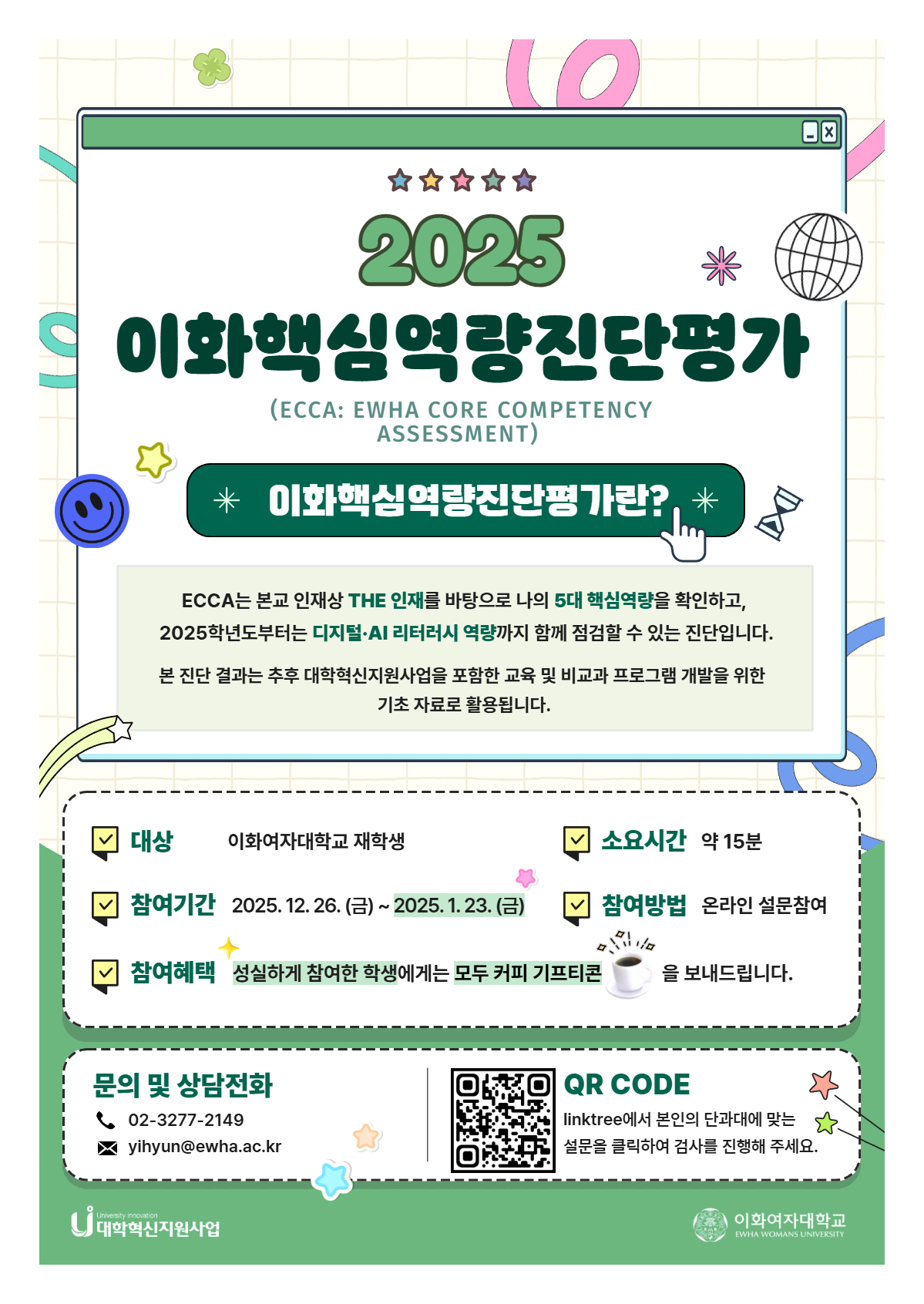 <2025년 대학혁신지원사업 성과 측정을 위한 이화핵심역량진단평가(ECCA) 재학생 참여 요청>