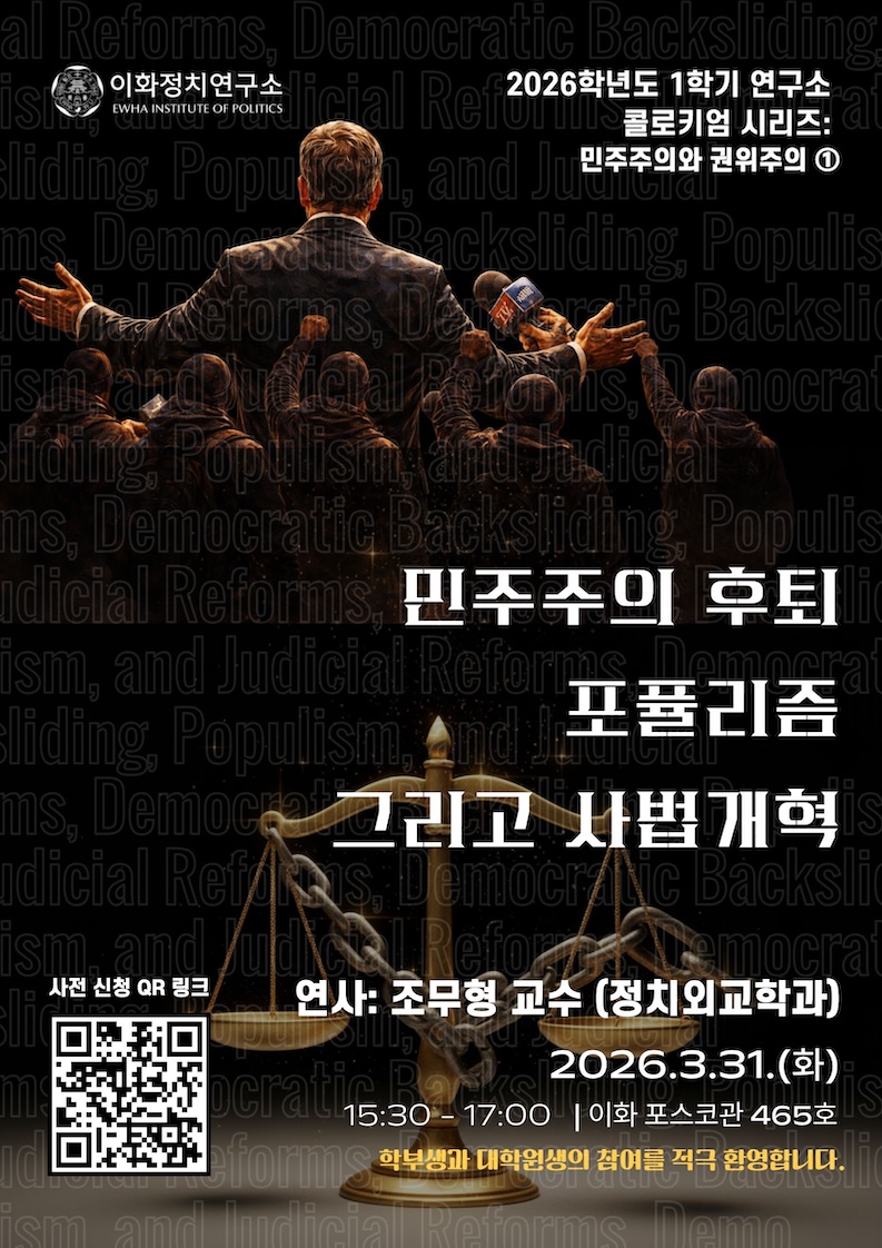 [이화정치연구소] 3월 콜로키움 개최 안내 "민주주의 후퇴, 포퓰리즘, 그리고 사법개혁" (연사: 조무형 교수)