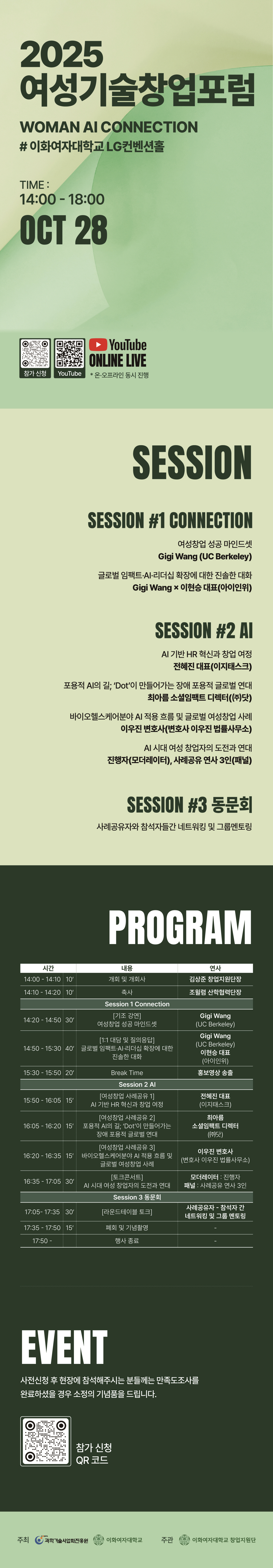- 장소: 이화여자대학교 국제교육관 LG컨벤션홀 / 온라인(유튜브 생중계)